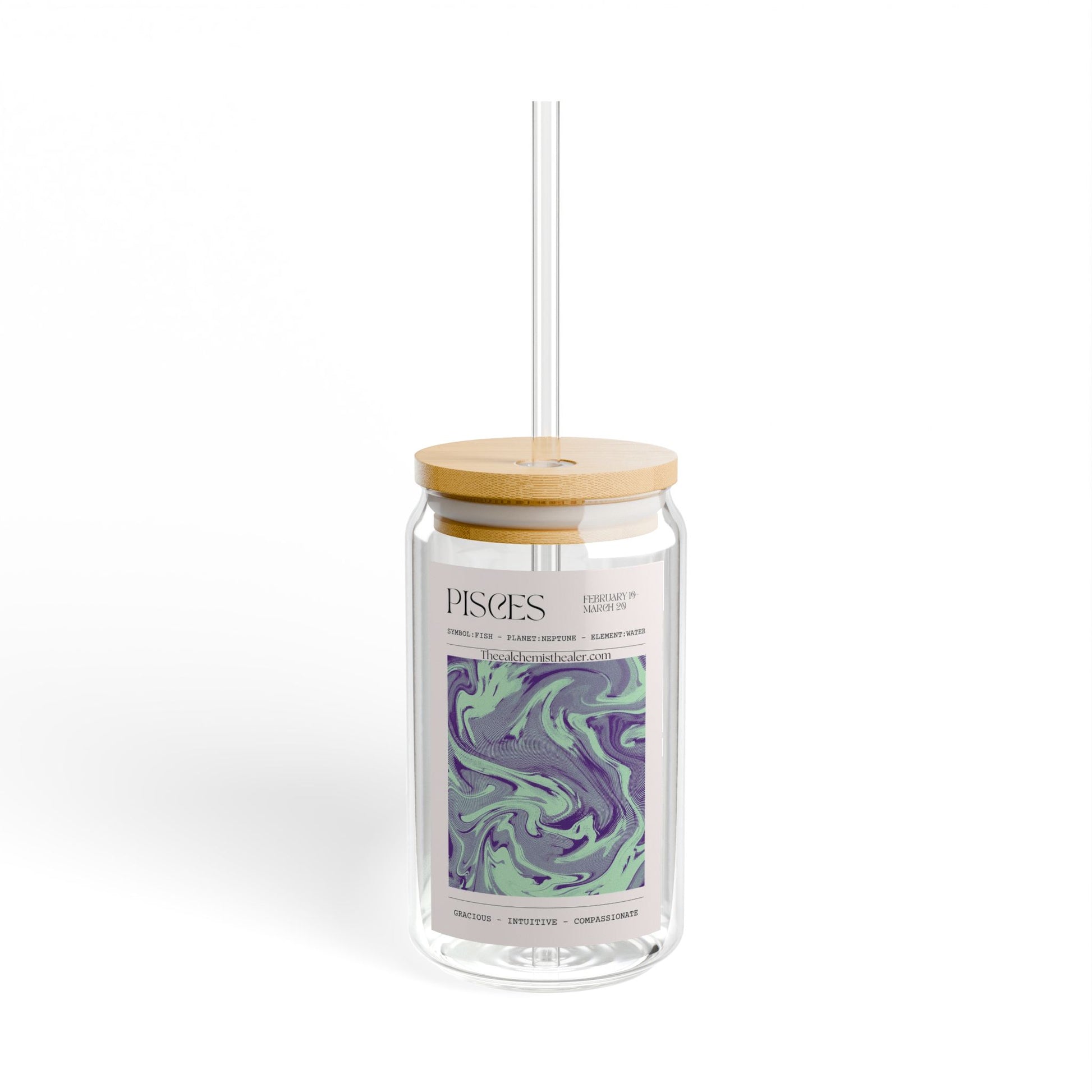Dream and flow with the Pisces Zodiac Glass Cup. This cup is ideal for the imaginative Pisces who finds joy in the depths of their favorite beverages.